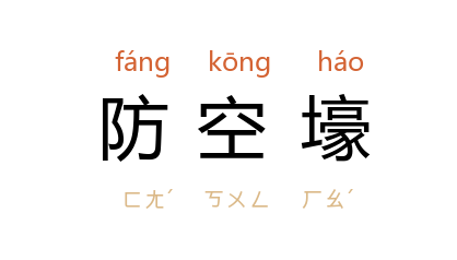 ⒈ 为了防备空袭减少损害而挖掘的壕沟,称为「防空壕」。