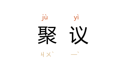 引北齐 颜之推 《颜氏家训·省事》:“还復采访讼人,窥望长短,朝夕聚议,寒暑烦劳,背春涉冬,竟无予夺。”郭沫若 《星空·广寒宫》:“嫦娥 们聚议之时, 张果老 半揭书院正中一帘,弓背而出,走至树前。”