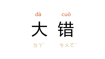 ⒈ 大的错误。见 宋 孙光宪 《北梦琐言》卷十四。错,本谓锉刀,借指错误。 苏轼 诗句本此。参见“六州铁”。