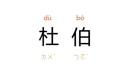 引《诗·小雅·都人士》“卷髮如蠆” 三国 吴 陆玑 疏:“蠆,一名杜伯。”清 袁枚 《随园随笔·物而人名》:“虫而人名者……蠆称杜伯。”