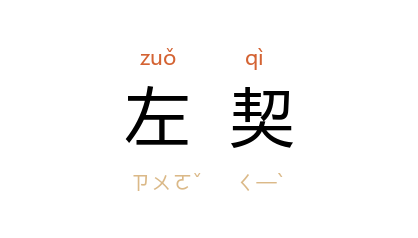 ⒈  契约。唐·杜牧〈杭州新造南亭子记〉:「今权归于佛,买福卖罪,如持左契,交手相付。」也作「左券」。