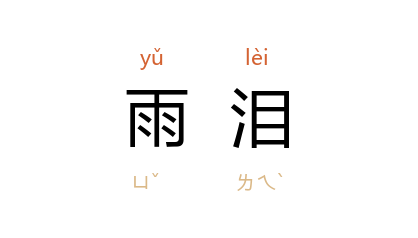 引《洛阳伽蓝记·卷一·永宁寺》:「发言雨泪,哀不自胜。」晋·陆云〈吊陈永长书〉:「东望贵舍,雨泪沾襟。」