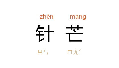 引《后汉书·陈忠传》:“隄溃蚁孔,气洩鍼芒。”《新唐书·沙陀传》:“因豪桀大会驰射,百步外针芒木叶无不中。”清 钱谦益 《归来泉歌答金坛于惠生曹汝真》:“沾濡乍与针芒应,滭沸俄随锄钁来。”