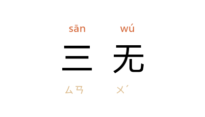 引《礼记·孔子闲居》:“孔子 曰:‘无声之乐,无体之礼,无服之丧,此之谓三无。’”孔颖达 疏:“此三者,皆谓行之在心,外无形状,故称无也。”晋 陆云 《晋故散骑常侍陆府君诔》:“五有三无,匪君不极。”