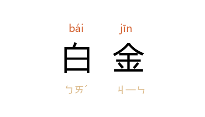⒊ 铂的通称。灰白色贵重金属,耐高温,可做坩埚、电极等。