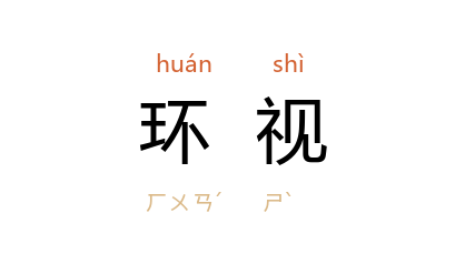 引《元史·卷二〇三·方技传·田忠良传》:「忠良环视左右,目一人,对曰:『是伟丈夫,可属大事。』」
