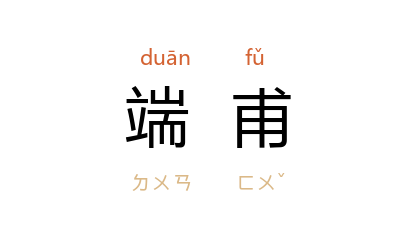 ⒈ 谓穿礼服,戴礼帽。端,周代礼服;甫,章甫,周代礼帽。语出《论语·先进》:“宗庙之事,如会同,端章甫。愿为小相焉。”