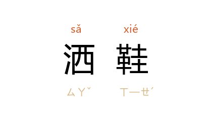 引老舍 《断魂枪》:“他们打扮的得像个样儿,至少得有条青洋绉裤子,新漂白细市布的小褂,和一双鱼鳞洒鞋。”《体育报》1983.12.24:“只见 王五 身着青绸紧身棉袄,薄绸灯笼裤,辫子缠顶,外扎英雄巾,宽带束腰,脚上两道脸密针纳过的洒鞋。”