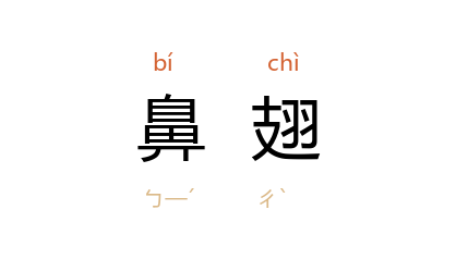 引《红楼梦》第八四回:“用桃红綾子小锦被儿裹着,脸皮趣青,眉梢鼻翅,微有动意。”萧军 《五月的矿山》第五章:“他底两只小三角眼闪起了光,鼻翅鼓动着。”郭澄清 《大刀记》第十章:“两只鼻翅儿扇动着。”