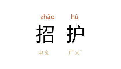 引《儿女英雄传·第十回》:「为此便请张老招护了安公子,张老婆儿招护了张姑娘拜过天地。」