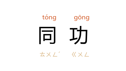 引《易·繫辞下》:“二与四同功而异位。”《列子·汤问》:“穆王 始悦而叹曰:‘人之巧乃可与造化者同功乎?’”《淮南子·人间训》:“愚者有备,与知者同功。”