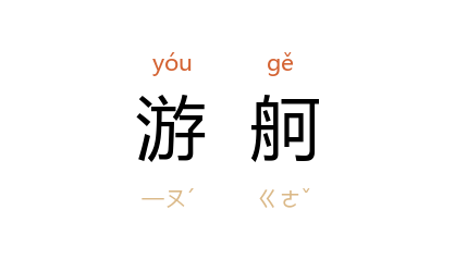 游船。 宋 张先 《河满子·陪杭守泛湖夜归》词:“游舸已如图障里,小屏犹画 瀟湘。”