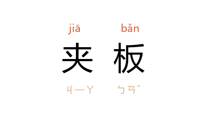 ⒈ 用来夹持物体的薄板,多以木板、厚纸、金属等制成。