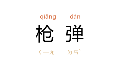 引茅盾 《当铺前》一:“乡下人自然懂得枪弹比石子厉害,而况区公所又要抓人,只好忍气吞声天天把冲坏了的田横埂修整加高。”巴金 《灭亡》第二一章:“他底润湿的眼睛又看见大刀、枪弹、绞刑台、监狱底图画。”