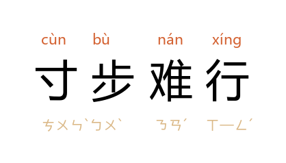 ⒈ 一小步也行走不得。形容行走困难,或比喻处境艰难窘困。也作「寸步难移」。