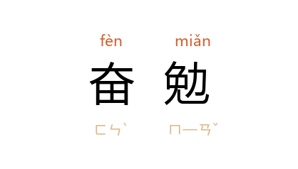 引郑观应 《盛世危言·税则》:“我 华 人皆知奋勉。”李大钊 《列宁》:“他同着他的姊妹Anna入圣彼得堡大学,在那里读书,非常的奋勉。”郭沫若 《落叶·第二二信》:“哥哥,你以后也要渐渐地忙起来了呢,请你奋勉地做去罢。”