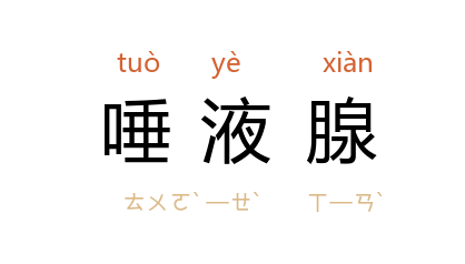 ⒈  人和脊椎动物口腔内分泌唾液的腺体。人和哺乳动物有三对较大的唾液腺,即腮腺、颌下腺和舌下腺,都有长的导管通入口腔,另外还有许多小的唾液腺。也叫唾腺。