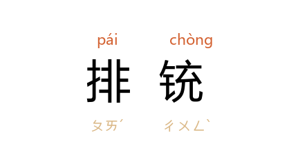 引清 陈康祺 《郎潜纪闻》卷九:“道光 二十一年,西人踞吾郡,掠耕牛为粮。一酋方屠牛,忽一牛突起,角出酋肝肠……十餘辈莫能制,乃列陈排銃与牛战。”《光明日报》1983.1.10:“当地渔民、猎户,使用国家明令禁用的排铳,猎杀黑鹳一只、白鹳六只、天鹅二百多只。”