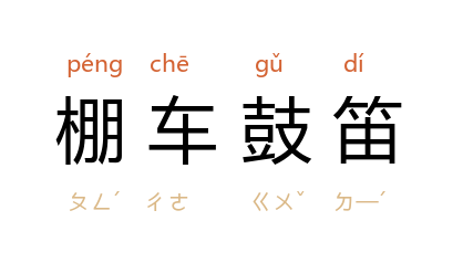 ⒈ 宋真宗 咸平、景德 间,天下升平。 洛 中风气,富家每以车载酒食声乐,游于通衢,称做“棚车鼓笛”。参阅 宋 邵伯温 《闻见前录》卷三。