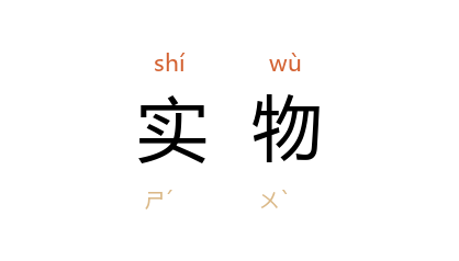 ⒈ 真实而具体的事物。相对于文字图画而言。
