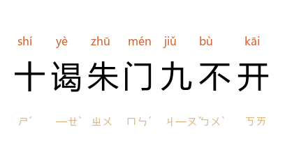 注音ㄕˊ 一ㄝˋ ㄓㄨ ㄇㄣˊ ㄐ一ㄡˇ ㄅㄨˋ ㄎㄞ