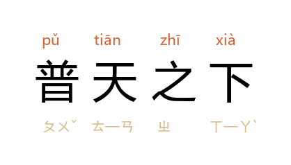 引《汉书·卷九九·王莽传中》:「莽策命曰:『普天之下,迄于四表,靡所不至。』」