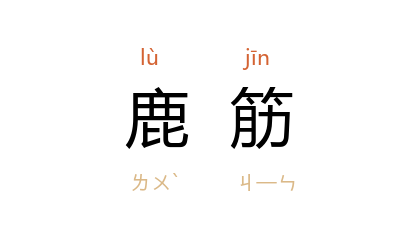 引《金史·世宗纪上》:“大定 八年,詔罢 復州 岁贡鹿筋。”明 李时珍 《本草纲目·兽二·鹿》:“鹿筋, 苏恭 曰:‘主治劳损续絶。’尘沙眯目者,嚼烂挼入目中,则粘出。”