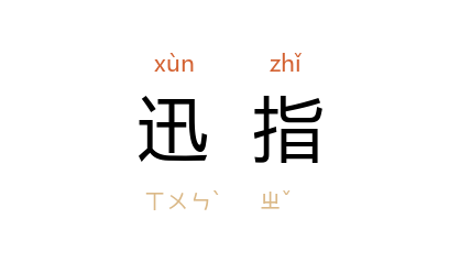 引元 无名氏 《百花亭》第三折:“纔离瓦市,恰出茶房,迅指转过翠红乡。”元 不忽木 《点绛唇·辞朝》套曲:“你看这迅指间乌飞兔走,假若名利成,至如田园就,都是些去马来牛。”