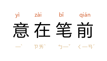⒈ 在下笔写字前先构思字形。晋·王羲之〈题卫夫人笔阵图后〉:「夫欲书者,先干研墨,凝神静思,预想字形大小、偃仰、平直、振动,令筋脉相连,意在笔前,然后作字。」后泛指在写字、诗文、绘画前先构思成熟后才下笔。也作「意在笔先」、「意存笔先」。