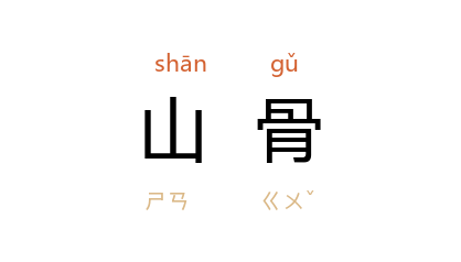 引唐 刘师服 侯喜 等《石鼎联句》:“巧匠斲山骨,刳中事煎烹。”金 元好问 《十一月五日暂往西张》诗:“林烟漠漠鸦边暗,山骨稜稜雪外青。”明 袁宏道 《祝雨》诗:“洗山山骨新,洗花花色故。”