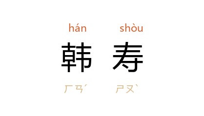 ⒈ 南朝宋刘义庆《世说新语。惑溺》:“韩寿美姿容,贾充辟以为掾。充每聚会,贾女于青璅中看,见寿,说之。”后因以“韩寿”借称美男子,多指出入歌楼舞榭的风流子弟。