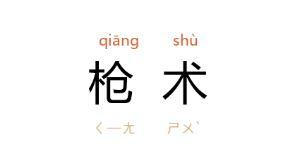 ⒈ 武术中用枪的技术。枪有长枪、钩镰枪、两头枪和短枪数种。枪法有:扎、刺、搭、掤、缠、圈、拦、拿、扑、点、拨、敲等。