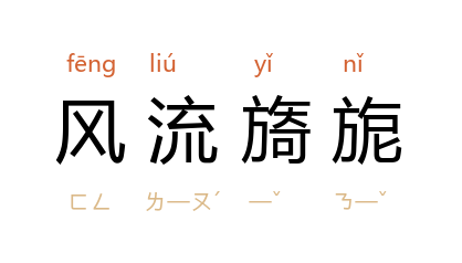 ⒈ 风流:风度和韵致;旖旎:愿意指旌旗飘扬的样子,引申为柔美的样子。形容风韵娇柔。多指妇女的神态。