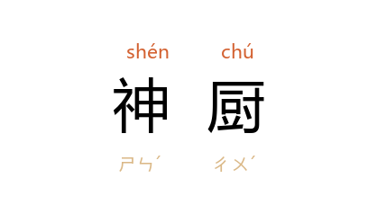 ⒈ 见“神厨”。亦作“神厨”。亦作“神橱”。