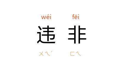 引《管子·水地》:“水者万物之準也,诸生之淡也,违非得失之质也。”清 俞樾 《古书疑义举例·两字对文而误解例》:“按‘违非’二字对文,‘违’读为‘韙’。 隐 十一年《左传》:‘犯五不韙。’ 杜 注曰:‘韙,是也。’然则‘违非’犹言‘是非’。”