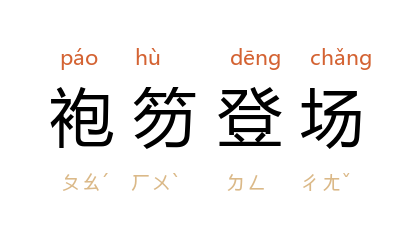 ⒈ 袍,古代官服;笏,古代大臣上朝所执手板。袍笏登场,就是扮演大臣的演员登台演戏,现在常用来比喻坏人上台,有贬义;或比喻新官上任,有讽刺意。