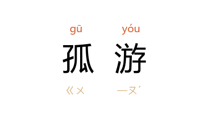 引晋 木华 《海赋》:“鱼则横海之鲸,突扤孤游。”南朝 宋 谢灵运 《于南山往北山经湖瞻眺》诗:“不惜去人远,但恨莫与同。孤游非情叹,赏废理谁通。”南朝 梁 任昉 《赠郭桐庐出溪口见候久之郭生方至》诗:“亲好自斯絶,孤游从此辞。”宋 朱熹 《卜居》诗:“朋来即共懽,客去成孤游。”