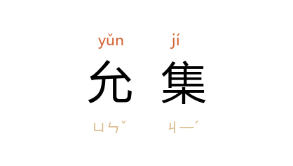 引《后汉书·孝顺帝纪赞》:“孝顺 初立,时髦允集。”髦,俊。 晋 陆机 《汉高祖功臣颂》:“三王从风,五侯允集。”南朝 梁 刘勰 《文心雕龙·诔碑》:“写实追虚,碑誄以立,铭德慕行,文采允集。”