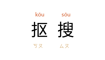例如:「他在厨房里抠搜了半天,还是找不到吃的东西。」