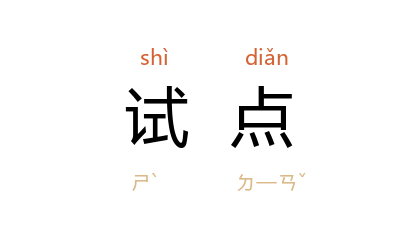⒈ 大陆地区指正式进行某项工作之前,先做小型试验的地方。