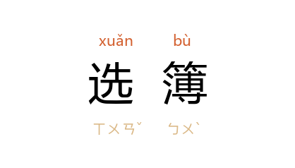 引南朝 梁武帝 《立选簿表》:“故前代选官,皆立选簿,应在贯鱼,自有銓次。”《新唐书·李栖筠传》:“时大盗后,选簿亡舛,多伪冒, 栖筠 判折有条,吏气夺,号神明。”《明史·董传策传》:“吏、兵二部持选簿就 嵩(严嵩 )填註。”