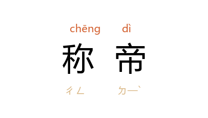 引《三国演义·第一五回》:「却说袁术暗有称帝之心,乃回书推托不还。」《初刻拍案惊奇·卷二》:「后来高宗南渡称帝,改号建炎。」