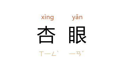 ⒉ 如杏子形状的眼睛。多以形容女子的美目。
