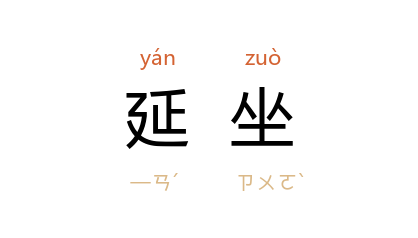 引《晏子春秋·谏下五》:“晏子 至,已復事,公延坐。”宋 庄季裕 《鸡肋编》卷下:“盖众客旅进退,必特留问其家世,知非丞相昆弟,则不復延坐,遂趋而出也。”清 纪昀 《阅微草堂笔记·滦阳消夏录一》:“其族兄自 歙 往 扬州,途经友人家,时盛夏,延坐书屋,甚轩爽,暮欲下榻其中。”