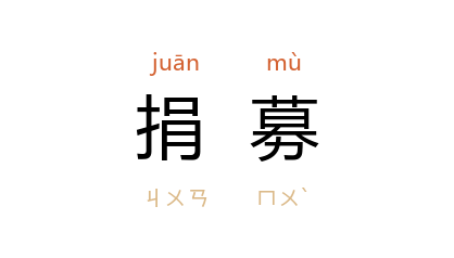 例如:「这次的义卖所得将全部捐募给罹患癌症的病童。」