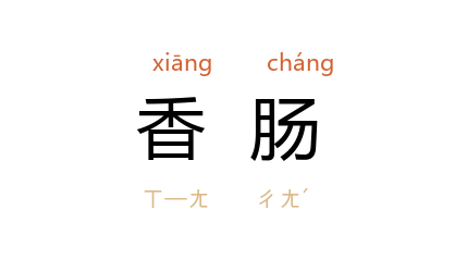 ⒈ 将浓重调味的细肉块,填塞在动物小肠制成的肠衣或合成物料制成的膜衣内而成的食品。