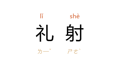 ⒈ 上古礼仪之一。在一定的礼节要求下,依循乐声而射矢。有大射、宾射、燕射、乡射等。 孙希旦 集解谓礼射有四:一曰大射,二曰宾射,三曰燕射,四曰乡射。见 孙希旦 《礼记集解·射义》题解。