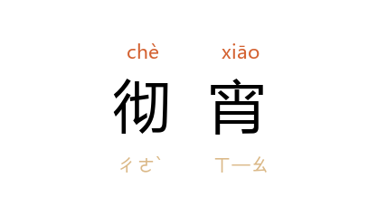引唐 李峤 《钟》诗:“平陵 通曙响, 长乐 彻宵声。”清 蒲松龄 《聊斋志异·宫梦弼》:“然十数人彻宵谈讌,犹是常也。”邹韬奋 《经历》五九:“我便在晚饭后亲自捧着这个时间表到印刷工场里去‘坐镇’,彻宵不睡地看着他们做。”