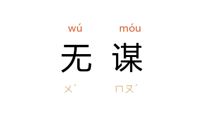 引《左传·宣公十二年》:“若事之捷, 孙叔 为无谋矣。”《后汉书·袁绍传》:“本初 无谋,不相用计。”宋 张耒 《次韵张公远》:“可待挑琴知有术,未传驱豆更无谋。”清 龚自珍 《四言》诗之四:“无言不售,无谋不成,无坚不摧,以蘄西生。”