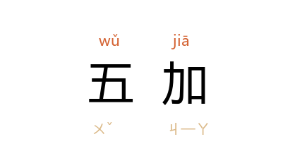 ⒈ 亦作“五茄”。灌木,有刺或无刺。掌状复叶,夏开黄绿色花,核果球形。根皮和茎皮称五加皮,可入药。新叶亦可食用。因以五叶交加者为上品,故名。参阅 明 李时珍 《本草纲目·木三·五加》。